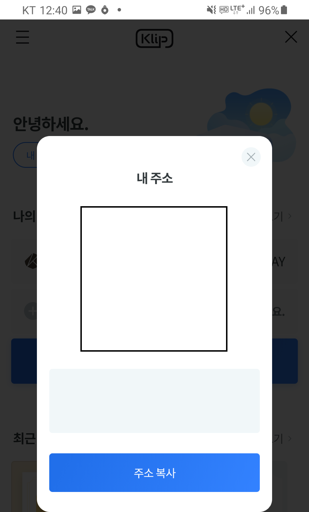 카카오톡 > 전체 서비스 > klip > 내주소 보기